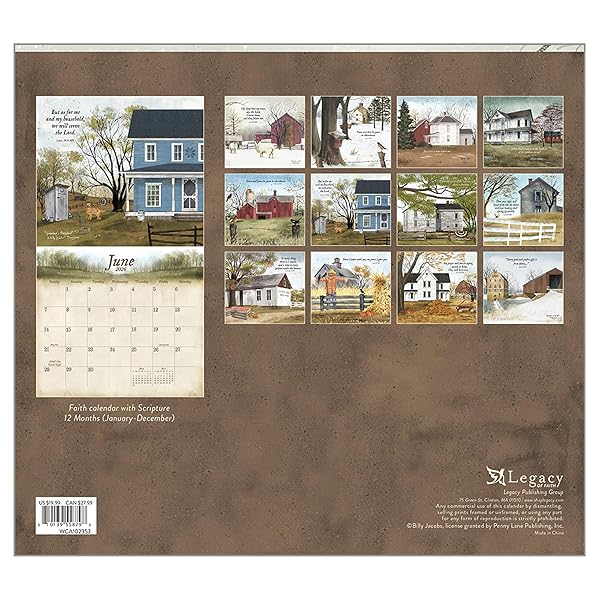 Bring the charm of the countryside and daily inspiration into your home or office with this 12-Month Wall Calendar spanning from January to December; Showcases a diverse collection of beautifully rendered paintings of rustic farmhouses and serene landscapes, accompanied by uplifting quotes and sentiments; Each month offers a new and captivating illustration.