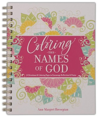 In the Coloring the Names of God Coloring Devotional, you can reflect on 52 names used to identify God in Scripture. As you ponder the meaning of these names while coloring the accompanying illustrated Bible verse, your mind will be prompted to praise God for who He is.The hardcover coloring book features a bright, inviting cover design with a vibrant pink, yellow, teal, and green floral arrangement that peeks out behind a bold pink frame. Gold-foiled details are elegantly added to spruce up the design. The frame holds the white-lettered and embossed title and sub-title. The raised embossed letters add an interesting tactile element.