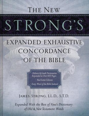 The New Strong's Expanded Exhaustive Concordance of the Bible is a valuable tool for pastors, teachers, and students of the Bible. This expanded edition is computer generated for the highest accuracy, and the Hebrew and Greek dictionaries have been augmented with definitions from the classic reference work Vine’s Complete Expository Dictionary of Old and New Testament Words.