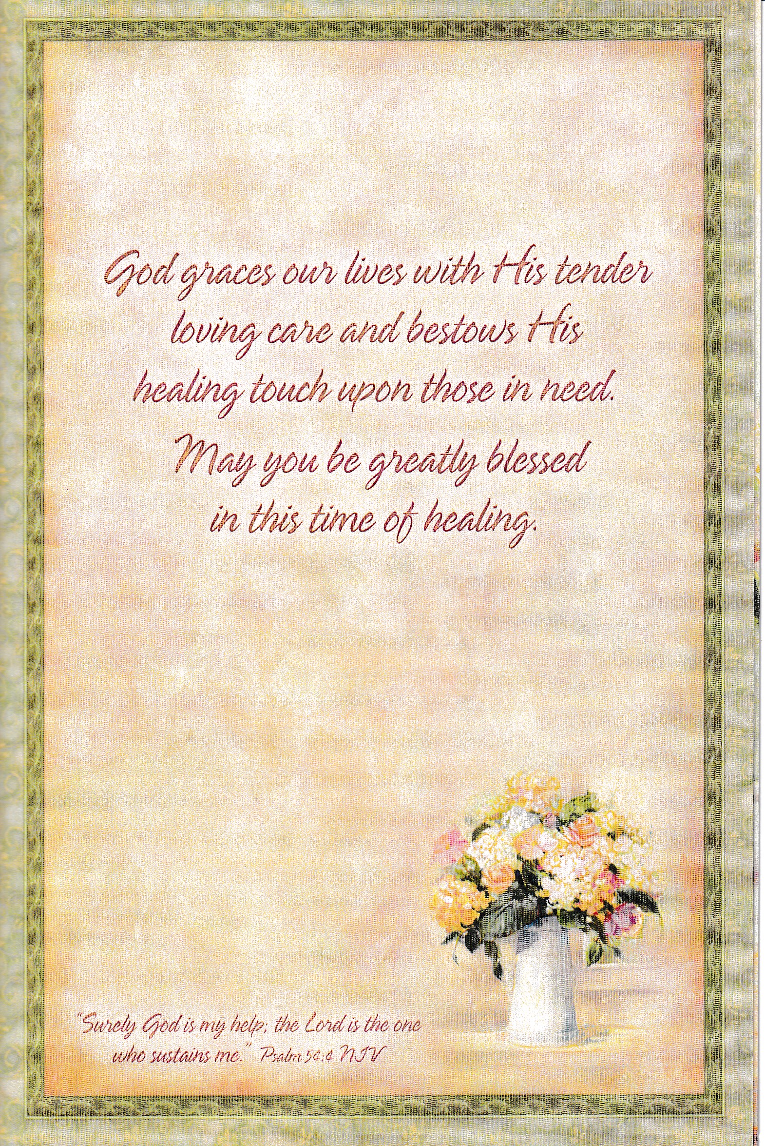 Card -Get Well Blessings ICM Price £1.69 RRP: £1.99 (Saving of 15%) ICM Price £1.69 RRP: £1.99 (Saving of 15%) Shipping is FREE for all UK orders over £20. (only £2.95 for UK orders under £20) All of Legacy’s Scripture Greeting Cards are lovingly designed inside and out and come with a matching envelope. Each card contains a scripture verse. A truly beautiful card. Size: 4.875” X 6.75”.