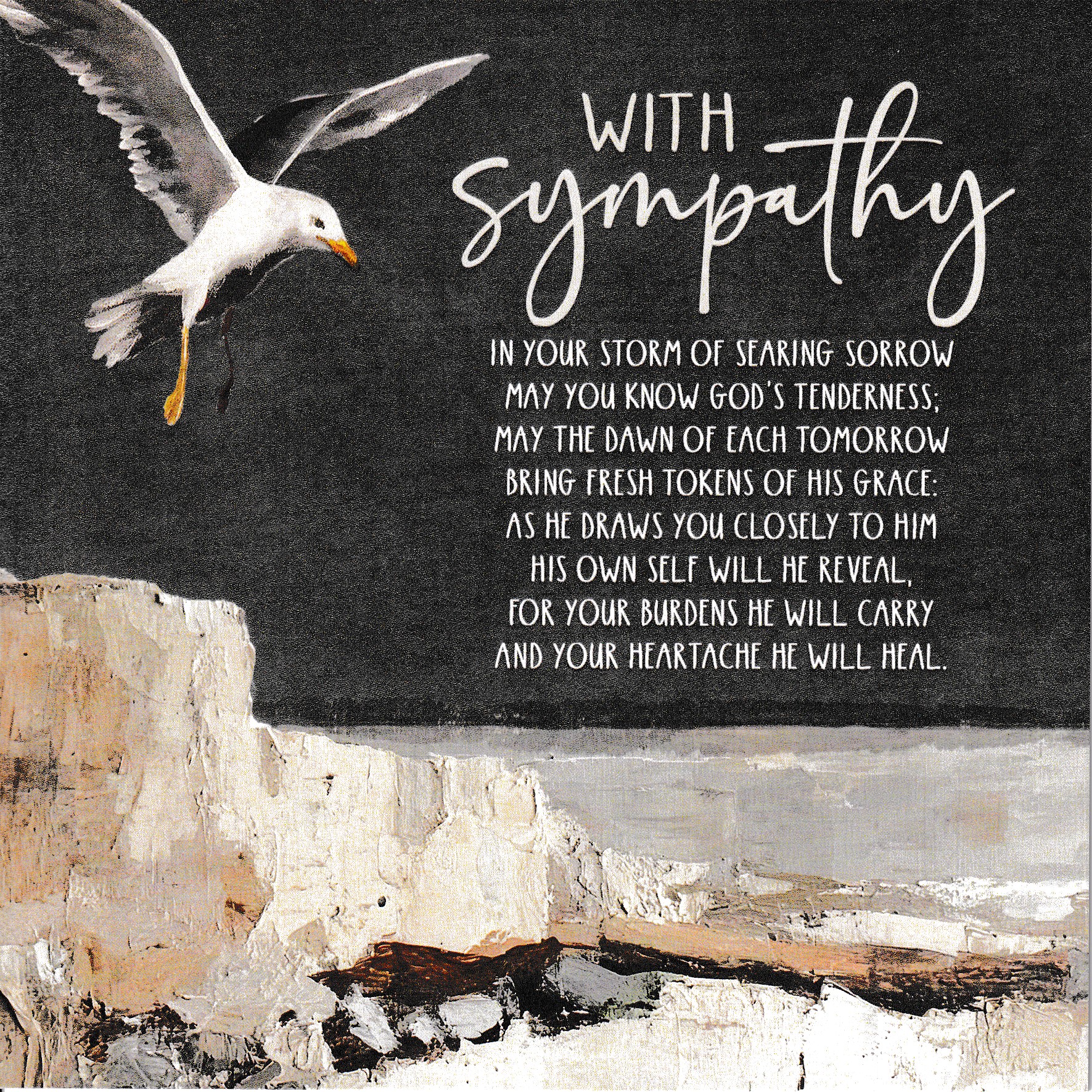 Card - With Sympathy I your Storm of Searing Sorrow May You Know God's Tenderness... ICM Price £2.20 RRP: £2.50 (Saving of 12%) ICM Price £2.20 RRP: £2.50 (Saving of 12%) Shipping is FREE for all UK orders over £20. (only £2.95 for UK orders under £20) Praying for you in these difficult days Isaiah 43v2