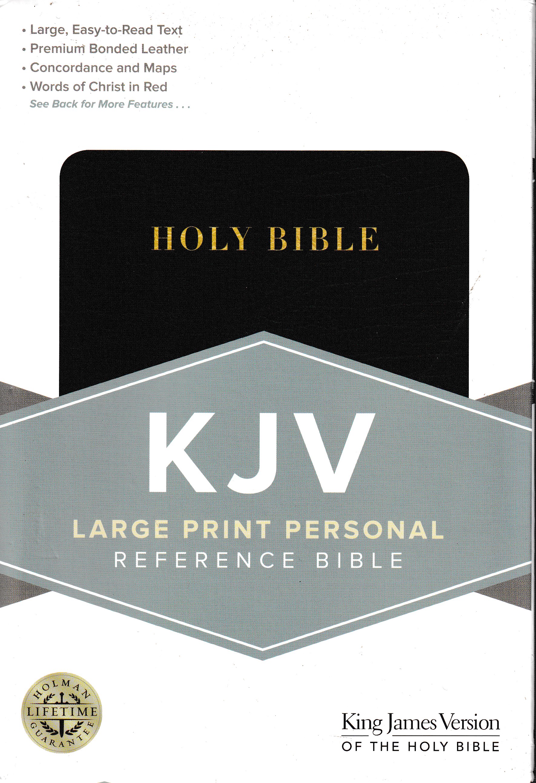 The KJV Large Print Personal Size Reference Bible features an easy to carry trim size and 10.5-point easy to read Bible type. Features Lifetime * Large Easy to Read Type Words of Christ in Red Topical Concordance 52 Week Reading Plan Presentation Page for Gift Giving Full Color Maps End-of-Verse References Additional Study Helps