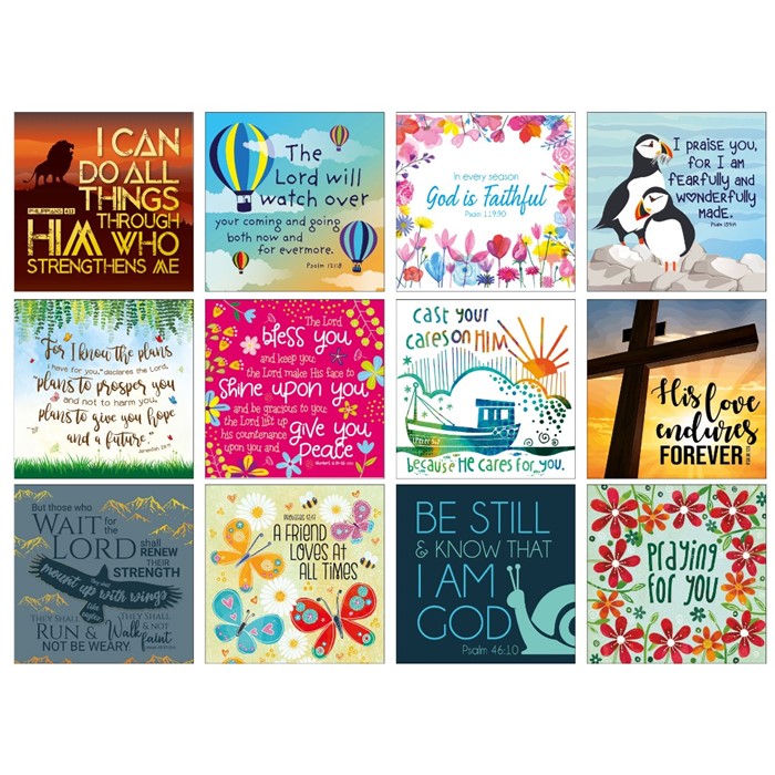 Pack of 12 Inspirational Christian greetings cards, printed on sustainable paper, with white envelopes. Blank inside for your own greeting.
