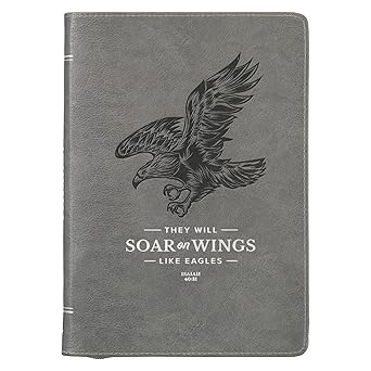 Discover the perfect companion for your morning devotions or nightly journal sessions with the Wings Like Eagles Steel Gray Faux Leather Journal with Zipper Closure. This journal offers a serene and calming design, creating an atmosphere of tranquility as you delve into its pages. Its encouraging sentiment and uplifting message will inspire and renew your spirit as you ponder its meaning.