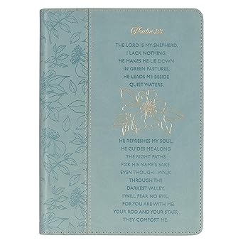 Journaling in the pages of the Psalm 23 Blue Faux Leather Classic Journal can be a transformative exercise to deepen your faith. This journal will become a catalog of moments that capture God's provision and grace in your life, guiding you to echo the psalmist's words: "Even though I walk through the darkest valley, you are with me; your rod and staff, they comfort me."