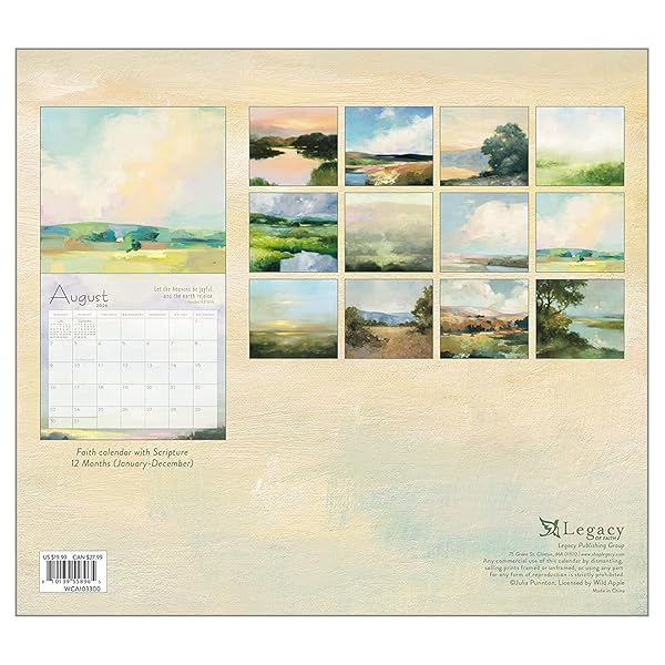 Find daily inspiration and connect with nature's tranquility with this 12-Month Wall Calendar spanning from January to December; Featuring stunning, detailed artwork, this calendar showcases a diverse collection of beautiful landscape paintings paired with uplifting scripture verses, creating a serene and reflective atmosphere; Each month offers a new and captivating illustration.