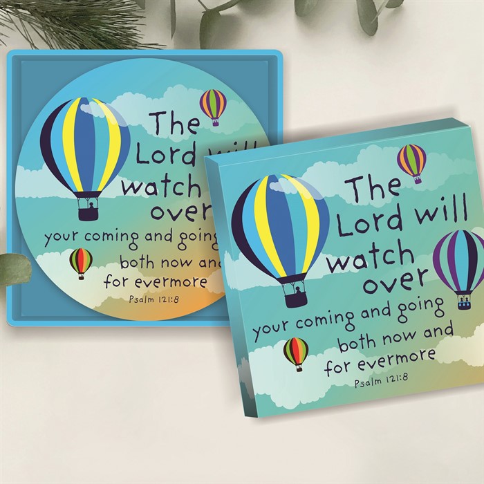 Wording on front: ‘The Lord will watch over your coming and going both now and for evermore’. Psalm 121:8