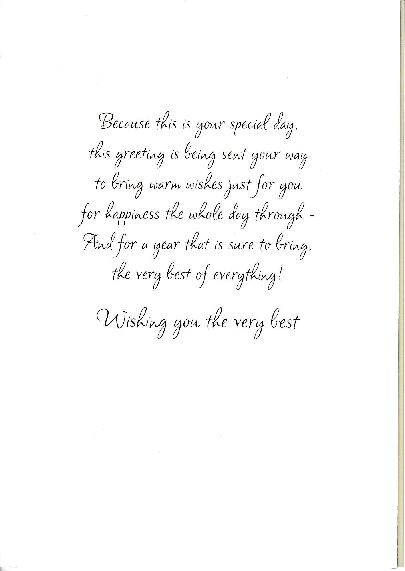 Card -Relax and Enjoy Your Birthday KJV ICM Price £1.69 RRP: £1.99 (Saving of 15%) ICM Price £1.69 RRP: £1.99 (Saving of 15%) Shipping is FREE for all UK orders over £20. (only £2.95 for UK orders under £20) Because this is your special day ... Wishing you the very best With white envelope