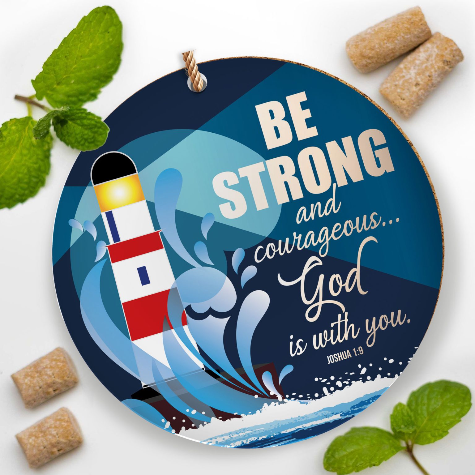 Wording on front: ‘Be strong and Courageous God is with you.’-Joshua 1:9